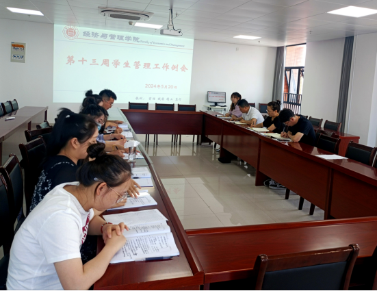 2024年5月20日,威廉希尔中文网站平台在行政楼725会议室召开本学期第十三周学生管理工作例会,副院长秦品德、书记助理叶赵强以及全体辅导员参加会议,会议由院长吴玲主持。