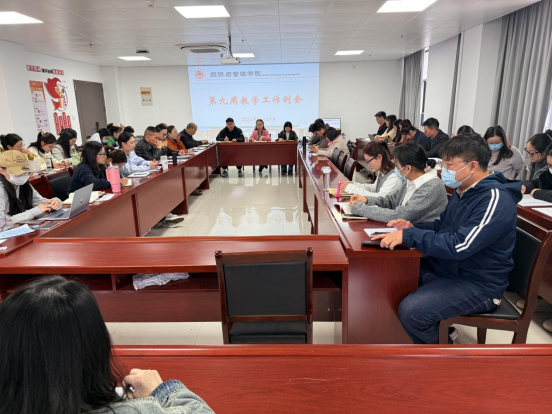 2025年10月29日下午,威廉希尔中文网站平台召开第九周教学工作例会。会议由院长吴玲主持,院长助理张珊、叶赵强及全体教师参会。