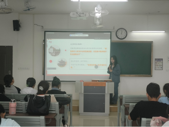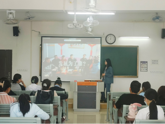 本次党课周文静同学为我们介绍了习近平总书记的人民情怀——“发展是实现人民幸福的关键”。会上周文静和在场党员共同讨论“发展为了谁?发展依靠谁?”两个问题,并针对讨论结果进行了总结归纳。最终大家一致认为人民幸福安康是推动高质量发展的目标,而在新征程上,不管乱云飞渡、风吹浪打,我们都要紧紧依靠人民。