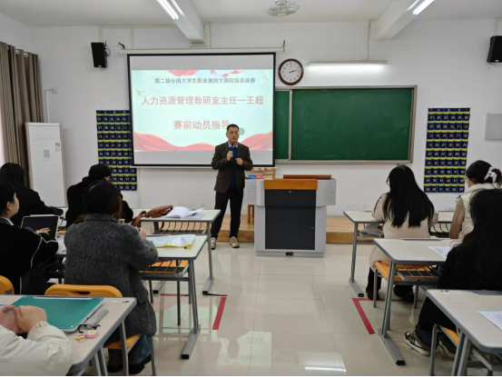 本次比赛共有91名学生报名参加,其中,就业赛道38名,成长赛道53名。比赛伊始,人力资源管理教研室主任王超为大赛做赛前指导,他表示本次比赛意义非凡,对同学们来说是一次难得的机会,希望同学们去认真备赛,合理规划自己的职业生涯。