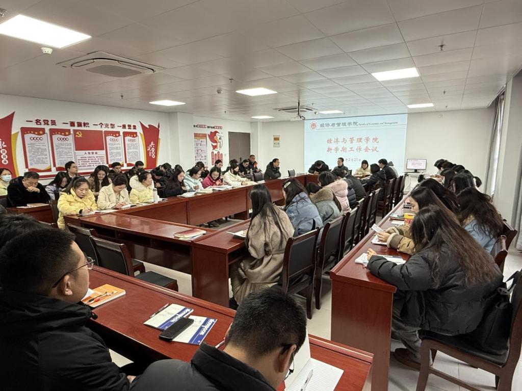2月21日下午4点,学院党总支召开会议。会议旨在确保新学期党建工作的高质量推进,为新学期的教育教学工作提供坚强的政治保障。会上,与会人员进行了理论学习,同时就近期即将开展的基层党组织书记抓基层党建工作述职评议考核工作进行了部署与交流。吴玲院长希望各支部书记要凝练支部工作特色,认真撰写总结,并增强工作理念,依靠党建统领促发展。她强调,要强化业务工作能力,夯实过程,争先创优。此次党总支会议的召开,不仅为新学期的党建工作指明了方向,也为学院的全面发展提供了坚强的政治保障。