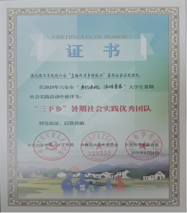近日,六安市“乡约皋地 淬炼青春”大学生暑期社会实践活动评选结果公布,我校威廉希尔中文网站平台赴六安“直播促进乡村振兴”暑期社会实践团队凭借突出的实践成果和扎实的工作作风,荣获“优秀团队”荣誉称号。