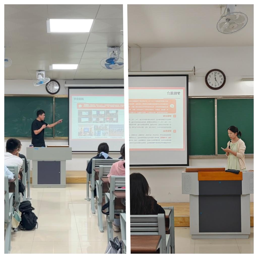 书记助理员禹辛和团总支书记王绎程围绕学生成长概况、成长认知、成长标准与成长路径等方面展开分享。他们结合多年教育经验,鼓励新生在认真学习专业知识的同时,积极参与A类、B类学科竞赛以及各类社团组织和志愿服务活动。通过竞赛锤炼创新思维和专业实践能力,在社团与服务中提升团队协作精神与社会责任感,同时注重发展个人兴趣与特长,努力成为德智体美劳全面发展的新时代青年。