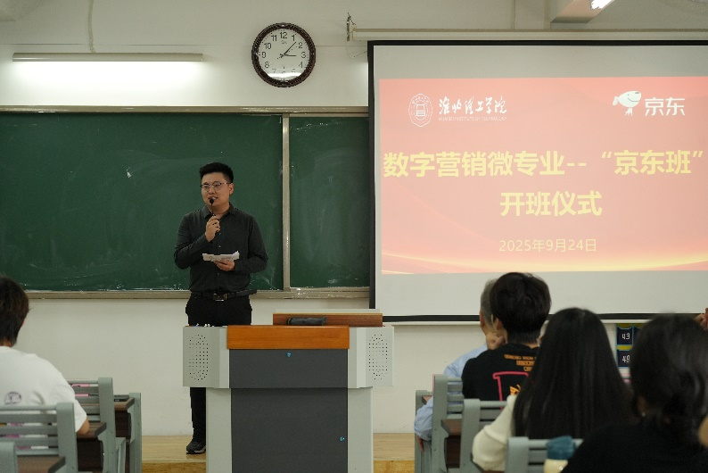2025年9月24日,william威廉中文首届数字营销微专业“京东班”开班仪式在二教323隆重举办。京东集团产业合作部大区负责人杨阳、william威廉中文副校长汪建利、校教务处副处长秦品德,首届“京东班”的全体同学、威廉希尔中文网站平台的领导、“京东班”的班主任和任课教师参加了开班仪式,威廉希尔中文网站平台院长吴玲主持活动。
