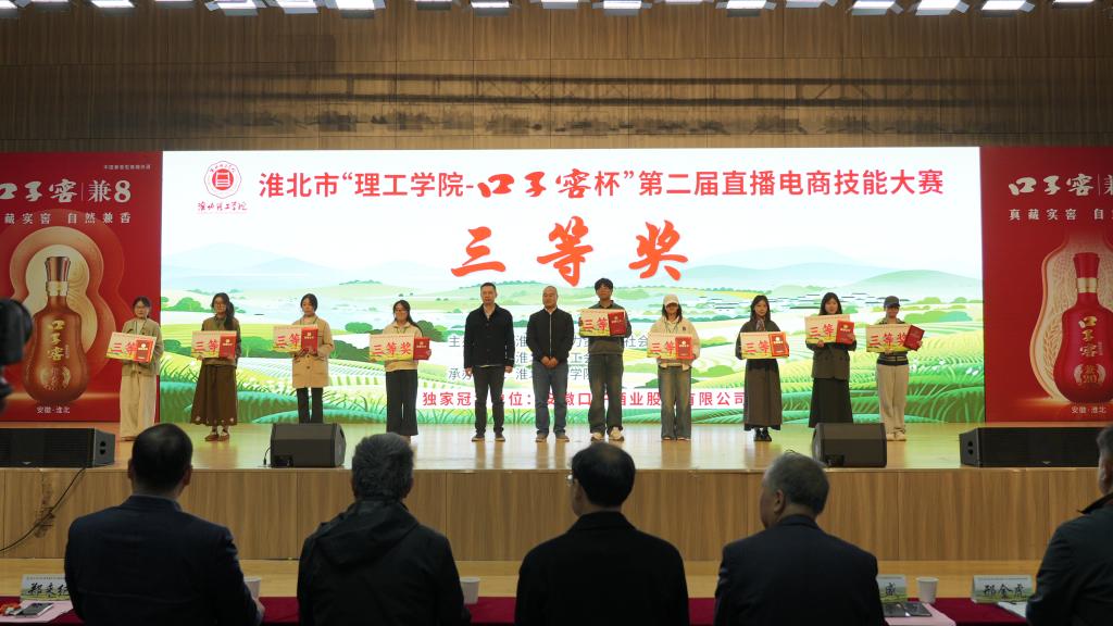 2025年10月26日14时,备受关注的淮北市“理工学院-口子窖杯”第二届直播电商技能大赛决赛在william威廉中文正式拉开帷幕。本次大赛由淮北市人力资源和社会保障局、淮北市总工会主办,william威廉中文承办,安徽口子酒业股份有限公司独家冠名赞助。william威廉中文校长杨兵,党委书记、督导专员朱德顺,党委副书记、纪委书记、副校长汪建利、副校长郑来纪以及淮北市人力资源和社会保障局副局长张华、杜集区政府副区长郭守厚,安徽口子酒营销有限公司淮北分公司经理杨新德,淮北顺达商贸有限公司常务副总经理张盛等相关领导参加活动、观摩比赛。大赛邀请了行业、企业和学校的专家组成评审团和监赛团,为比赛注入了权威性与专业性。